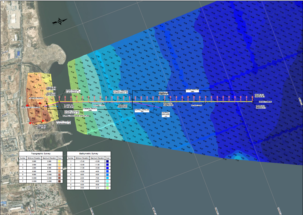 大口径HDPE管道,两根取水管,管径规格DN2000,取水管总长度7000米;一根排水管,管径规格DN1200,排水管长度1960米